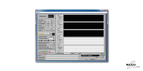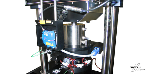 测试中,可连续测量法向力,试样筒环境温度,样品摩擦线性距离,转速和摩擦扭矩。试样筒可由室温加热到150℃。试样筒中的K型热电偶进行温度控制和测量。光学激光传感器测量非接触式测量位移。有效扭矩由扭矩轴记录,反作用扭矩由扭矩模块测量。转速以数字方式记录,测量频率为4 Hz。测量数据被自动发送到控制柜并进行相应数据处理。数据采集由分辨率为16位的多功能数据采集模块提供,软件提供0.01 - 100Hz的测量频率,软件用于控制和测量数据并记录。