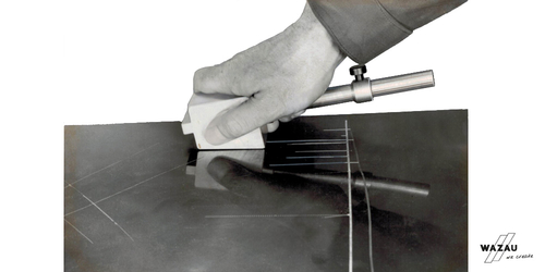 测试中,硬金属刻刀被压在10°倾斜的样品上。弹簧张力通过复杂系统连续可调节。测量值为使精漆碎裂的弹簧张力。