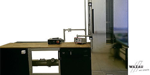 该仪器用于测试和评估建筑材料和构件的燃烧性能,模拟在规定火焰中暴露的样品阻燃性。此外,在测试中将用到建材、构件、消防竖井阻燃墙壁以及阻燃玻璃等样品,四种建材样品被集中放置在方形区域中,由燃气燃烧器提供规定火焰进行点燃,从而在测试中进行性能一致性比对。