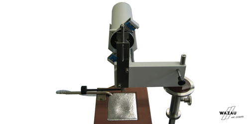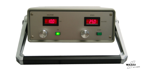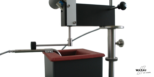 该仪器为垂直浸渍试验,升降单元可允许样品以0-45mm/s 的速度浸入和浮出,最大提升高度为25mm。该装置采用石英计时装置,控制浸渍时间在0-10s。浸渍式钎焊槽为T05或T06,接入测量器及控制装置上(LPK型号仪器提供可插拔装置)。浸入钎焊槽的速度和浸渍时间通过电位计调节并显示于LCD屏。通过PID温度控制,可以调节钎焊槽的温度从室温到450℃。